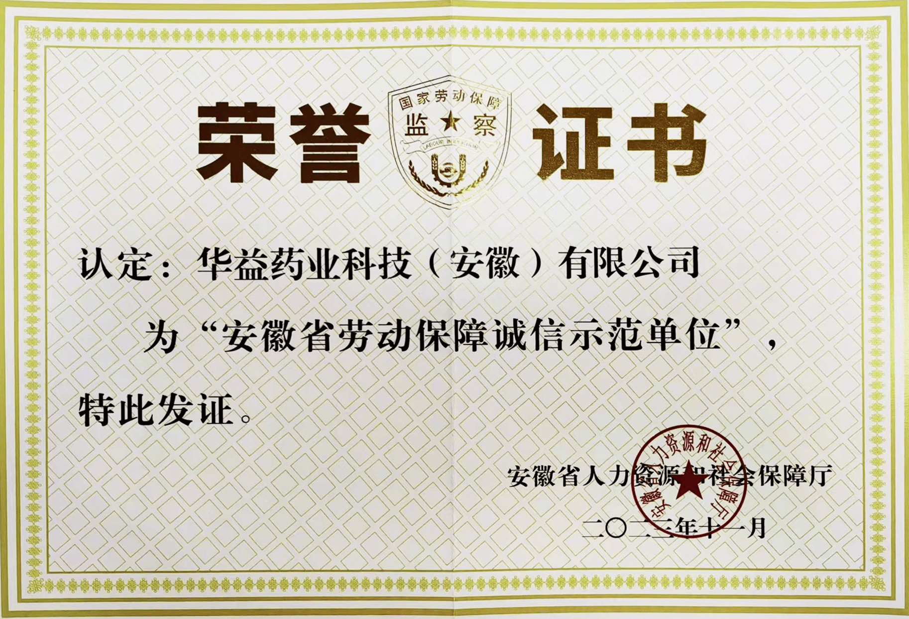 榮獲安徽省“高新技術(shù)企業(yè)”稱號