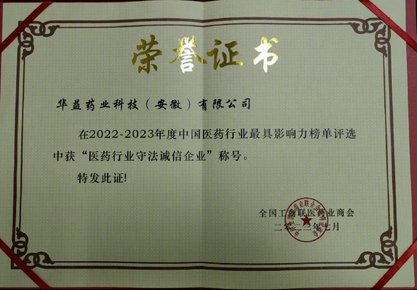 Enterprise of the Chinese Pharmaceutical Industry.